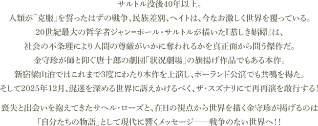 作=ジャン=ポール・サルトル 翻訳=芥川比呂志 演出=金守珍